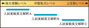 シニアテキストは、現役で大学に合格できる力をつけることを目指した授業のために開発されたテキストです。そのため、生徒の学力や志望校のレベル差に対応しやすいように、レベル別に編集しています。高校1年生から大学受験レベルへと、段階的に学習を進められる形になっていますので、学年に対応した使い方も可能です。